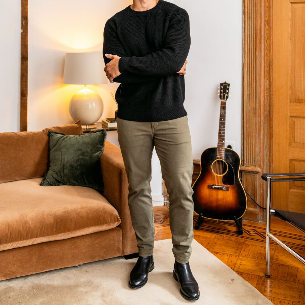 - Hand-Linked Elastic Cuffs and Waistband